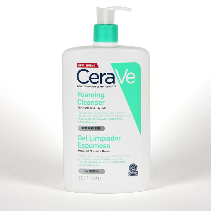 Un limpiador facial con textura de gel a espuma, el cual es ideal para eliminar el exceso de grasa y suciedad. El Gel Limpiador Espumoso de CeraVe contiene 3 ceramidas esenciales, ácido hialurónico y niacinamida para ayudar a preservar la barrera protectora de la piel, hidratar y calmar la piel. Desarrollado con dermatólogos para limpiar en profundidad, eliminar el exceso de grasa y refrescar la piel sin dejarla tirante y seca. Fórmula sin perfume.