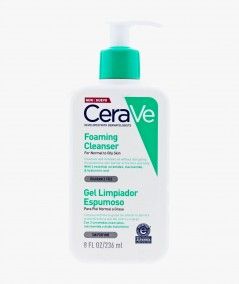Un limpiador facial con textura de gel a espuma, el cual es ideal para eliminar el exceso de grasa y suciedad. El Gel Limpiador Espumoso de CeraVe contiene 3 ceramidas esenciales, ácido hialurónico y niacinamida para ayudar a preservar la barrera protectora de la piel, hidratar y calmar la piel. Desarrollado con dermatólogos para limpiar en profundidad, eliminar el exceso de grasa y refrescar la piel sin dejarla tirante y seca. Fórmula sin perfume.