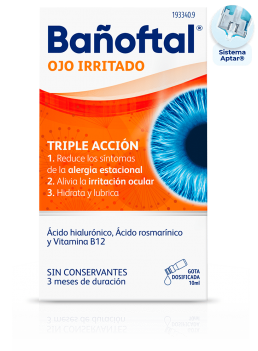 Además la fórmula Bañoftal Ojo Irritado no contiene conservantes en su fórmula, lo que conlleva una protección adicional a los tejidos oculares. Sistema patentado de envase Aptar® permite mantener la fórmula estéril durante 3 meses.